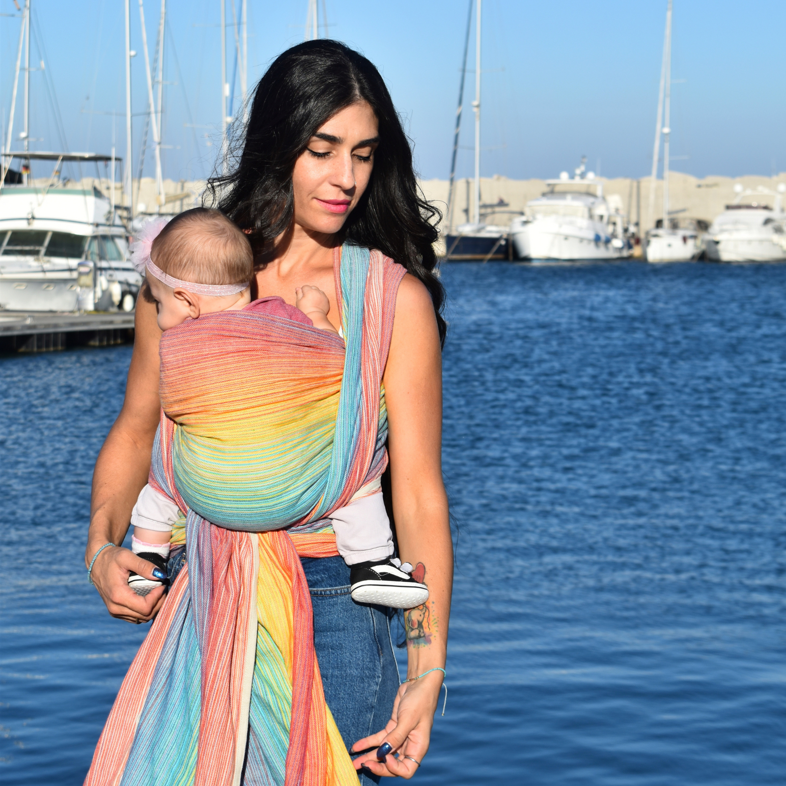 Der Ringsling ist sehr gut für Neugeborene und Frühchen geeignet, da man nicht so viel Stoff zu verstauen hat. Das macht es generell auch im Sommer sehr angenehm im Ringsling zu tragen.