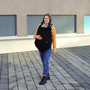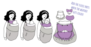 Das Tragecover ersetzt keine Babytrage, sondern dient als Wetterschutz über einer Tragehilfe oder einem Tragetuch.