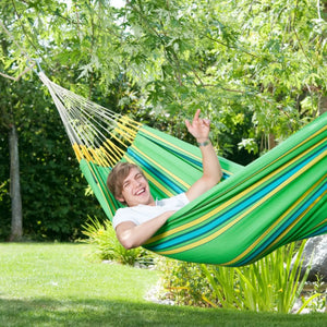 Wetterfeste Hängematten sind aus speziellem Funktionsmaterial gefertigt, was dazu führt, dass diese äußerst schnell trocknen. Wenn Du eine Hängematte für draußen möchtest, würden wir Dir auf jeden Fall zu einem wettferstem Modell raten, wenn Du die Hängematte nicht immer abhängen möchtest bei einem Wetterumschwung.